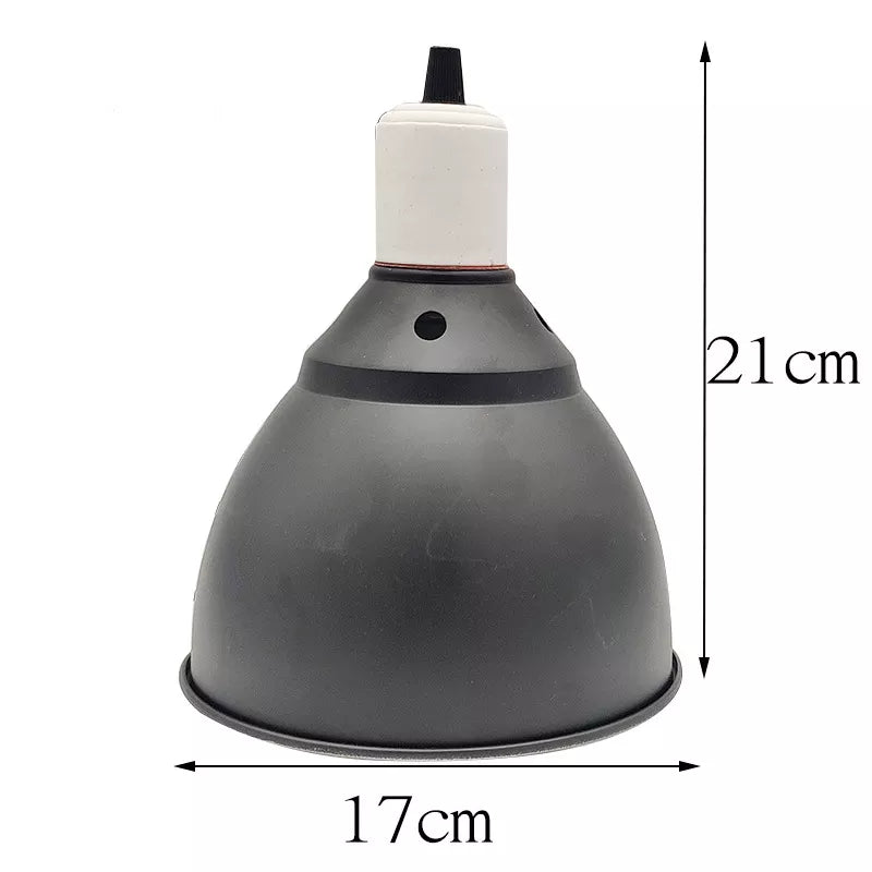 - 2 Portalámparas de campana: Construidos con casquillo completo de cerámica que permite poder colocar bombillas de calor, como la cerámica incluida en este kit. Su cúpula reflectante focaliza el calor y luz hacia abajo por lo que eson perfectos para poner sobre la tapa de un terrario de malla.